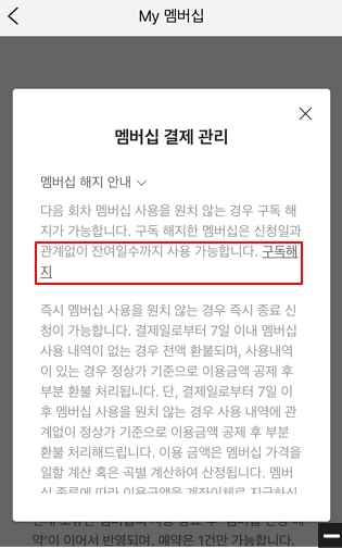 4. 멤버십 해지 안내 하단 '구독해지'