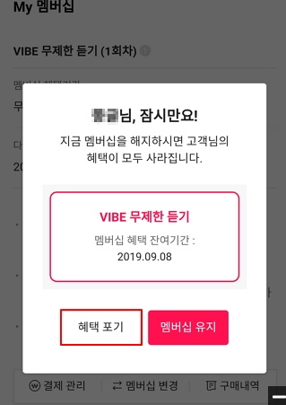 5. 혜택을 확인하신 후 '혜택 포기' 또는 '멤버십 유지'를 선택
